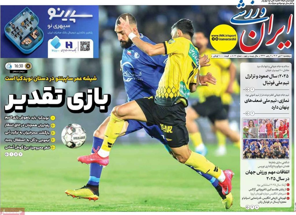 - صفحه اول روزنامه های امروز ۱۱ دی