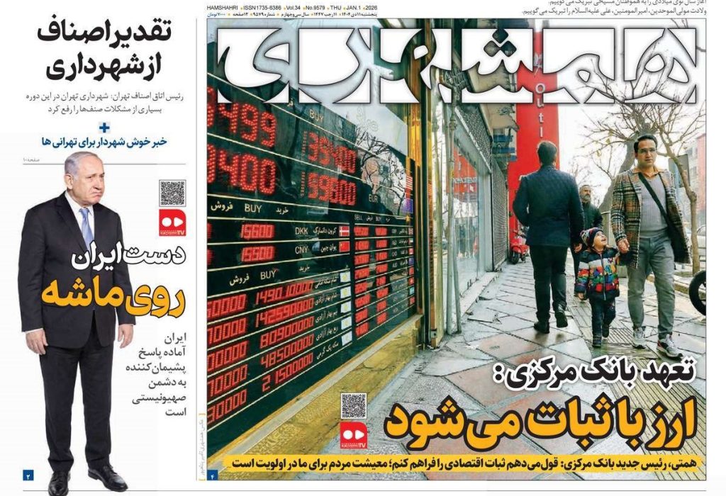 تصاویر صفحه اول روزنامه های امروز پنج شنبه ۱۱ دی ماه .