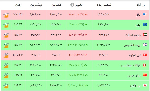 قیمت دلار امروز پنج شنبه ۷ اسفند ۱۴۰۴ با کاهش ۰.۰۵ درصدی نسبت به رو گذشته به ۱.۶۵۰.۵۵۰ ریال رسید.